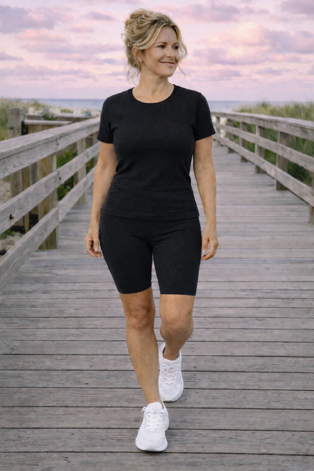 The biker shorts and t-shirt set is also perfect for fitness enthusiasts who want to look their best while working out or running errands. The lightweight and stretchy fabric provide maximum comfort and freedom of movement, making it easy to stay active and stylish from Cottage Beach Boutique.
